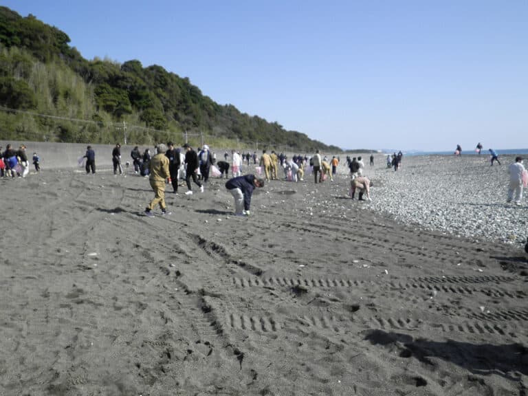 新宮市と合同で王子ヶ浜(御手洗海岸)の清掃活動を行いました。ボランティア、新宮市職員、和歌山県東牟婁振興局職員など約400人が参加しました。資源の有効活用を目指して、集められた流木は薪(まき)に加工しました。