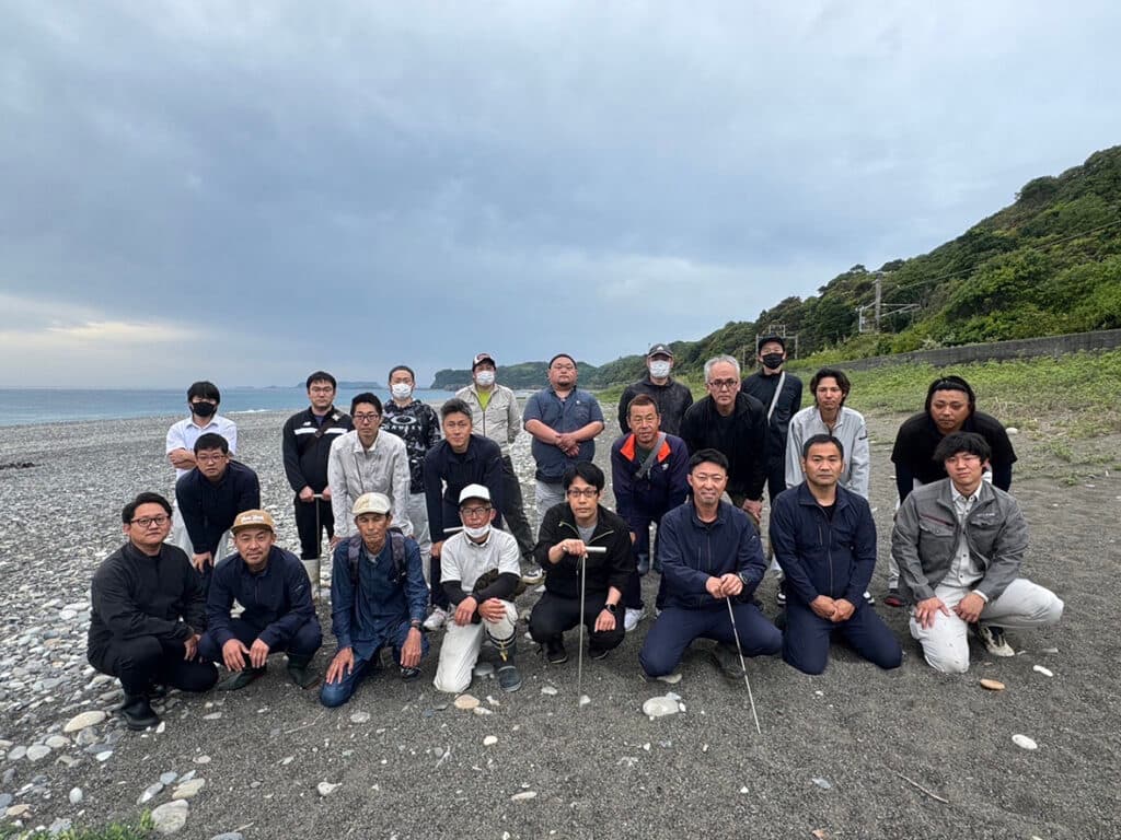絶滅危惧種アカウミガメの産卵地として知られる新宮市の王子ヶ浜で、今年も「紀伊半島の海亀を守る会」による早朝パトロールが始まりました。初日には青年部から23人が参加。早朝6時から、河口〜御手洗付近にかけての3キロほどの範囲で、上陸や産卵の形跡がないかを確認しました。昨年は残念ながら産卵が確認されなかった同浜。今年は多くのウミガメが上陸・産卵し、子どもたちと一緒に放流会が開催できることを願うばかりです。