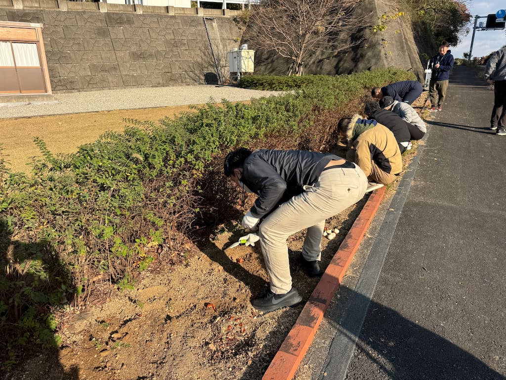 法人が管理する新宮市高森(通称)の国道42号沿いの花壇で、那智勝浦町二河の住宅型有料老人ホーム「Lino」の入所者さんをお招きし、アジサイの見学会を実施しました。
