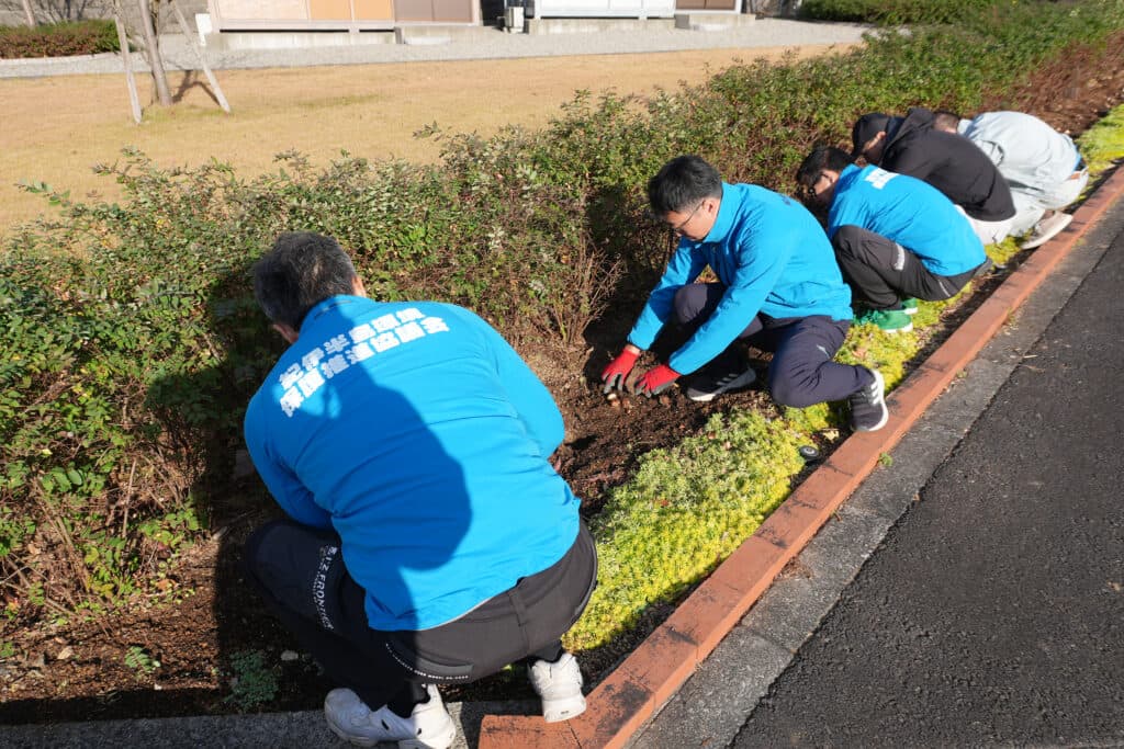 同連合会青年部の杉浦広貴は「回数を重ねるたびに多くの方々からお声がけを頂けるようになり、大変嬉しく思います。今後もこの場所を行きかう方々が綺麗だなと思って頂けるよう頑張ります」と話していました。チューリップの開花予定は3月下旬ごろになりそうです。たくさんの人に喜んでいただけるよう、会員一同、今後も景観美化活動に力を入れていきたいと思います。
