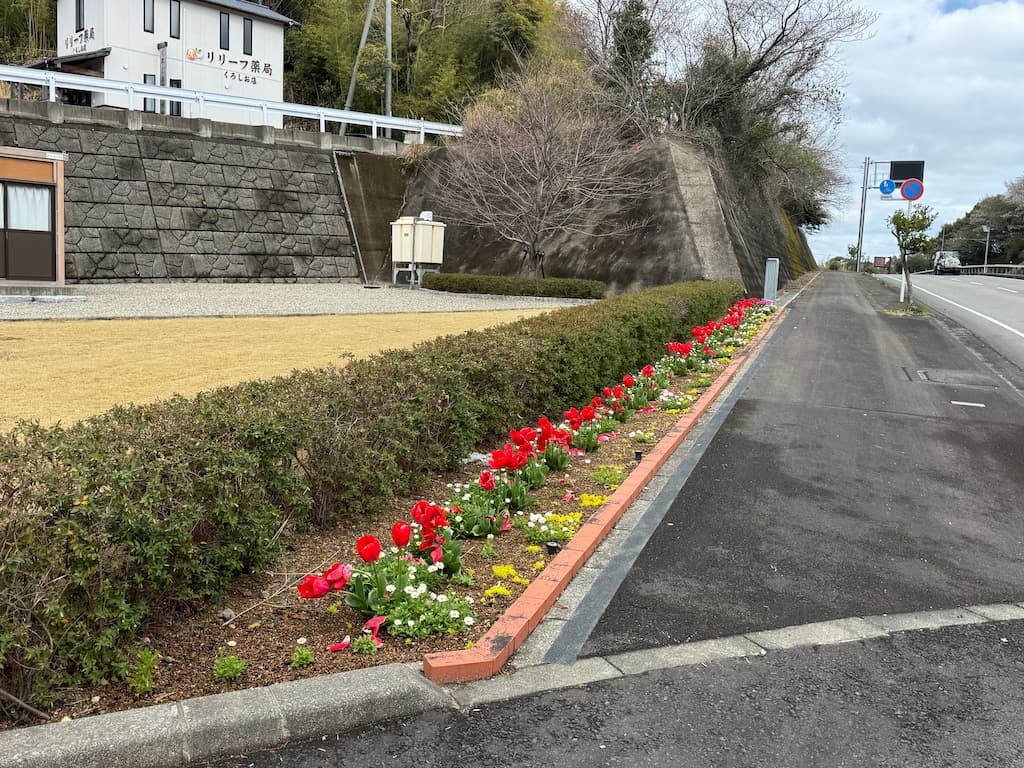 国道42号線沿いの高森交差点付の花壇にて景観美化を目的に毎年2~3回実施いております。