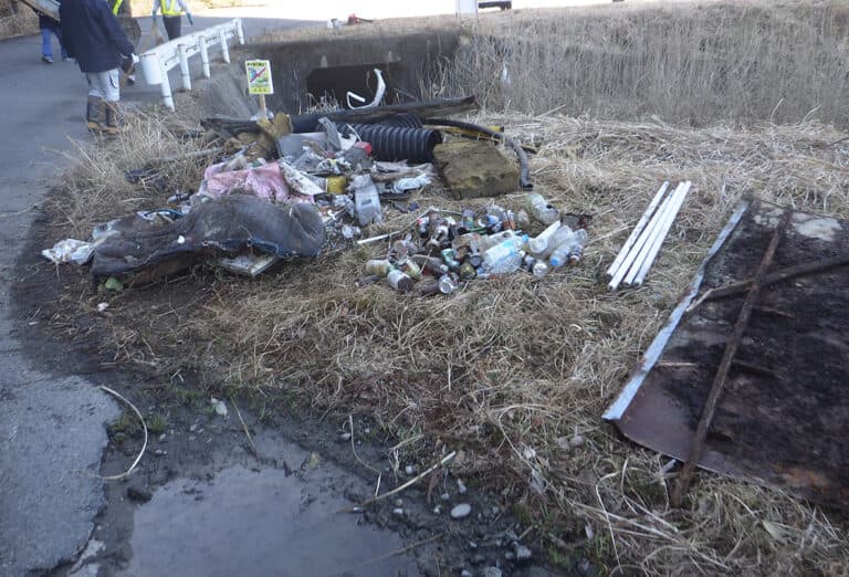 多くのペットボトルや産業廃棄物などが捨てられていました