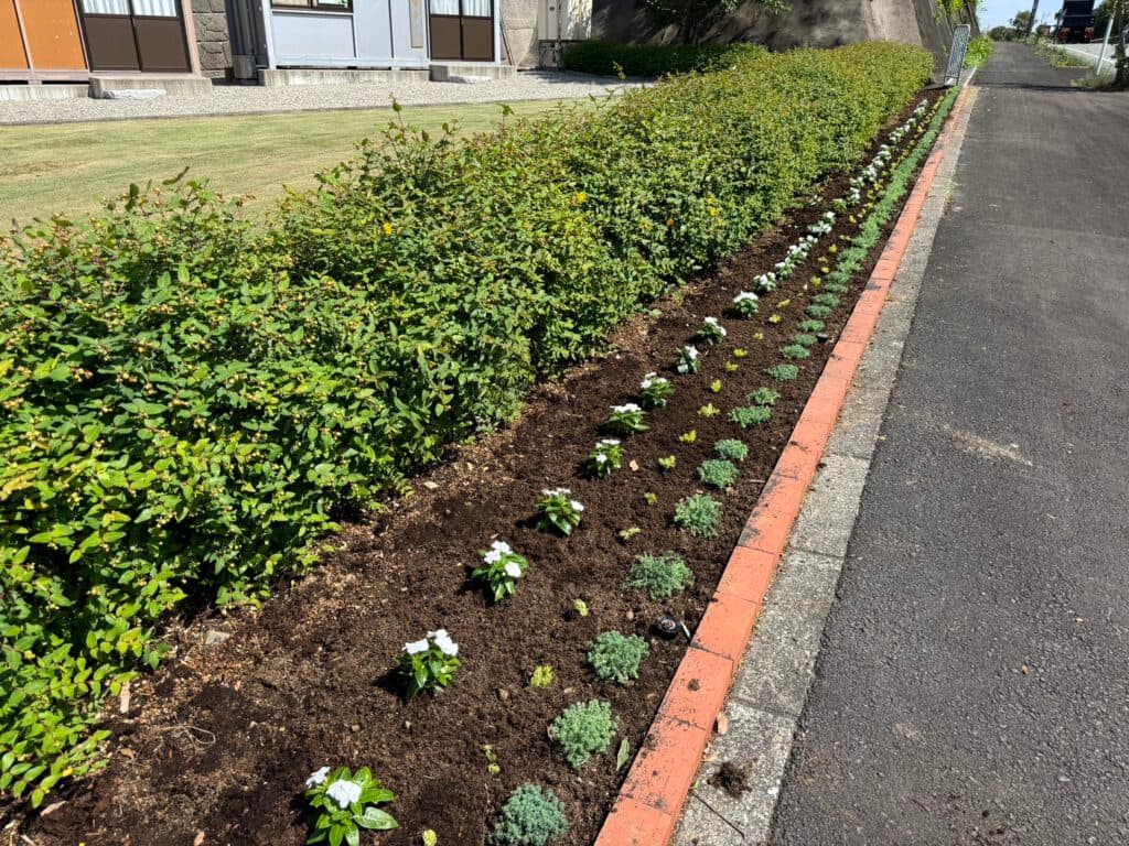 この日はニチニチソウ、セダムを植えました