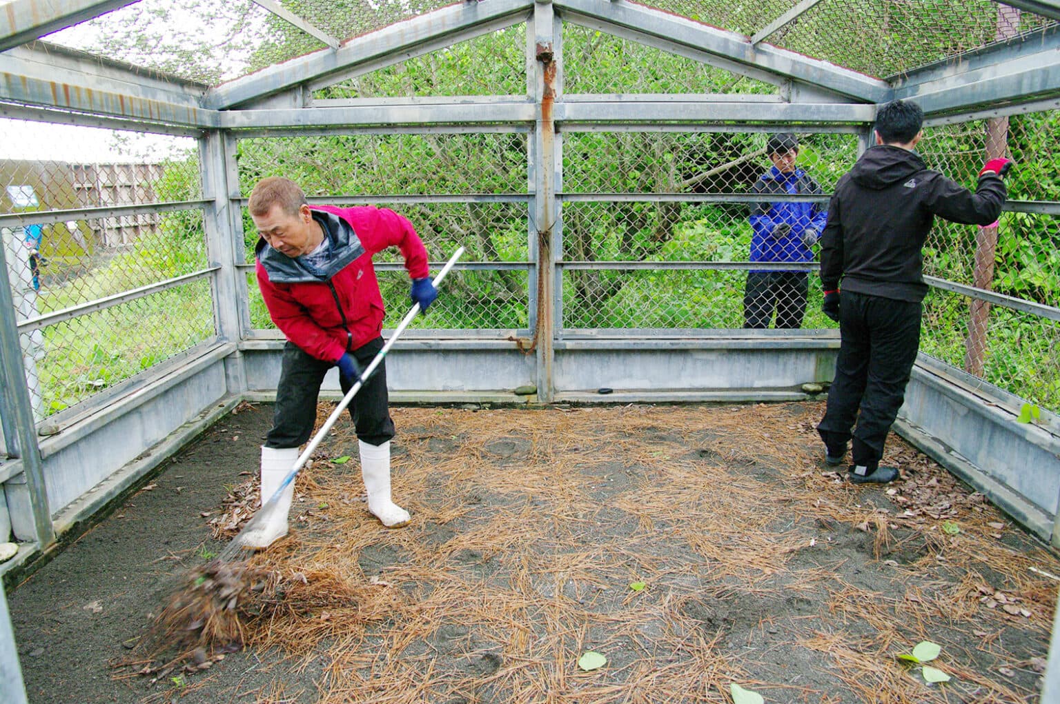 ウミガメの上陸と産卵に備え、「紀伊半島の海亀を守る会」会員は、絶滅危惧種アカウミガメの産卵地として知られる新宮市の王子ヶ浜の海岸に隣接するふ化場や飼育小屋周辺で草刈りなどを行いました。会員一同、たくさんのウミガメが上陸・産卵してくれることを願って、心を込めて作業しました。天気の冴えない日が続きますが、早朝パトロールも実施中!ウミガメの上陸に備えています。