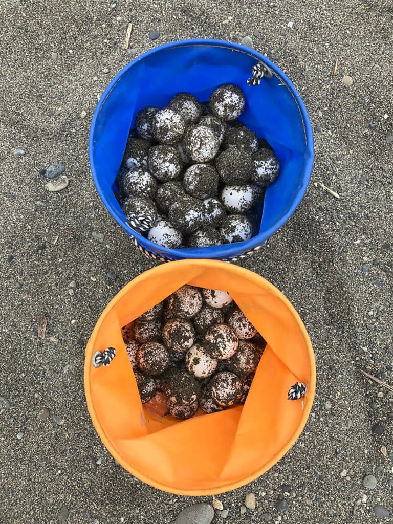 卵の数は90個。砂浜から保護して、ふ化場へ移しました。順調にいけば、約2ヶ月後にはふ化する予定。